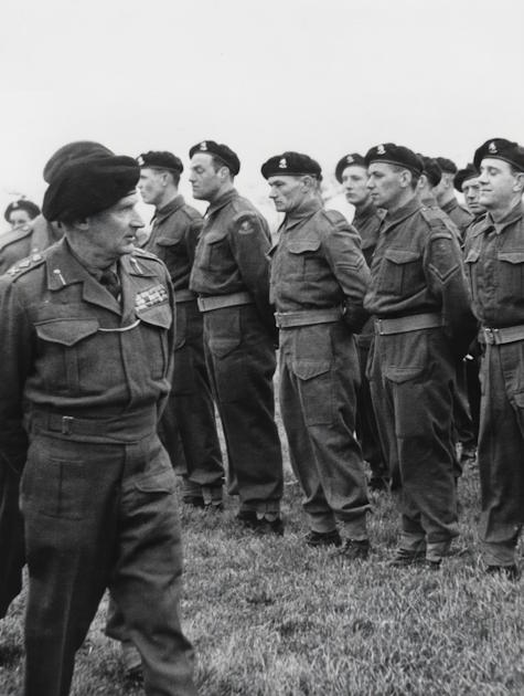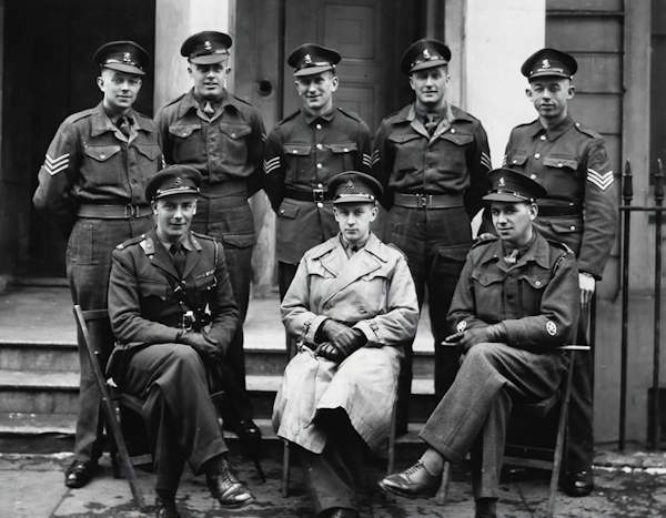 Daan, tweede van rechts, bij inspectiebezoek Montgomery (Collectie Richard van de Velde)