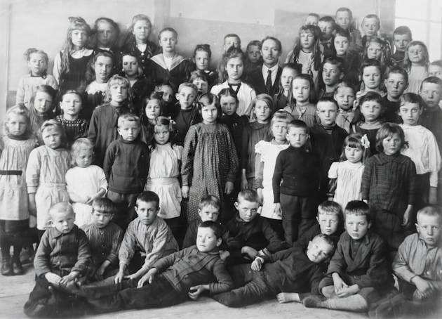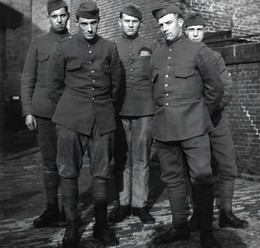 David liggend (links) tussen zijn schoolvrienden in 1919 (collectie Richard van de Velde)