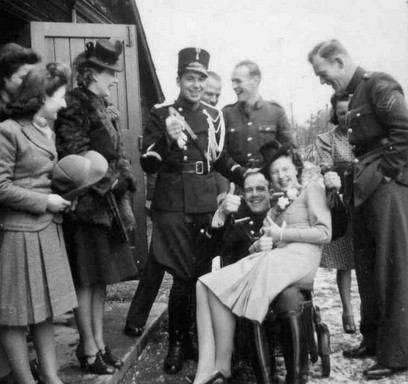 ‘Via de pub 'Bear Inn' in het nabij gelegen Stafford, waar veel marechaussees van Ranton Abbey uitgingen, kwam Daan op uitnodiging van mijn collega als introducé op de personeelsavond van mijn firma English Electric in de Borough Hall. Hij zag er heel imposant uit in dat mooie blauwe uniform en bovendien was hij heel charmant. Hij vroeg mij ten dans en we hadden die week nog een 'date'. Ik stelde 'm diezelfde week nog aan mijn ouders en grootmoeder voor en die waren, net als ik, ook weg van 'm. Een paar maanden later waren we al verloofd en we trouwden op 21 februari 1942 in ons dorp Walton-on-the-Hill.'