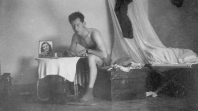 Gerry tijdens het vertrek (Bron: F. van Doorn)Toen wij langs Vlaardingen voeren zag ik op een steiger een grote witte lap zwaaien. Ik vroeg aan een sergeant, die achter me stond om zijn verrekijker en daar doorheen kijkende zag ik dat het mijn vrouw was die met die witte doek stond te zwaaien, verlicht door een schijnwerper van een politieboot. Sleepboten sleepten de Sibajak de waterweg uit waarna het schip op eigen kracht de zee invoer. Het weer werd slechter naarmate wij verder de zee opvoeren Wij, in het kleine voorruim hoefden niet beneden in de grote eetzaal te eten, dat moesten wij zelf, in gamellen, uit de keuken halen. Iedere dag werden daar twee soldaten voor aangewezen. De hangmat was voor mij een weldaad in dat slechte weer en die ruwe zee, vooral toen wij door de Golf van Biskaje voeren op weg naar Gibraltar. Mij viel toen hetzelfde op als toen ik in 1942 op de Colombia naar de Oost ging. Er was niets om de soldaten bezig te houden. Geen training op het onderhoud van wapens, geen militaire instructieboeken om te lezen, en geen voorlichting over het leven in de tropen, wat wel nodig was omdat de meeste soldaten groen waren en niet wisten wat er voor hen in het verschiet lag. Het was voor hun gewoon een reisje naar Indonesië. Komende in de Middellandse Zee werd de Sibajak al vlug de Schobbejak gedoopt vanwege het hevige slingeren van het schip met zijn hoge opbouw. Tussen Sicilië en de Afrikaanse kust gebeurde een tragedie.