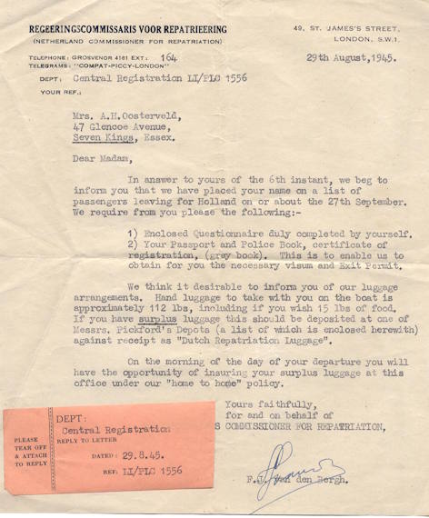 Na zijn demobilisatie in september 1945 regelt hij dat zijn vrouw Annie naar Nederland komt. Zij reist per boot en komt aan in Rotterdam. De overgang is groot, maar via contacten, onder andere een Engelse buurvrouw met familie in Nederland, wordt de stap iets minder moeilijk.