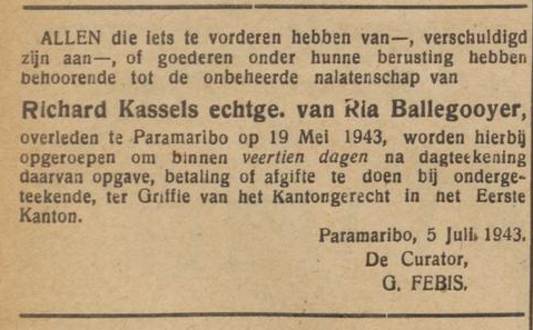 Zijn ouders en ex-vrouw werden pas op 26 januari 1944 door het Rode Kruis ingelicht over zijn overlijden.