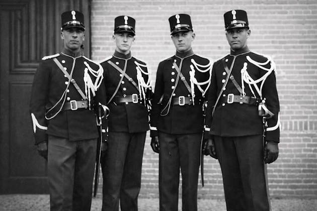 Jacob, tweede van rechts, met enkele collega van de Marechaussee-brigade Axel