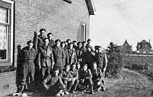 Arthur met zijn peloton bij het huis van familie Driedijk in Wolfaartsdijk. Ze slapen met z’n allen boven de stal.