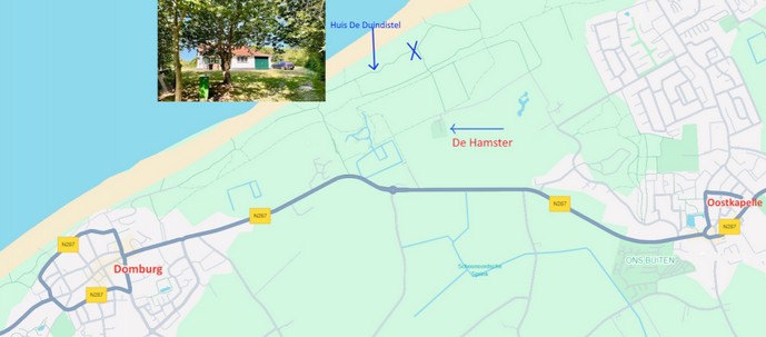 X= de plek des onheils ligt ten noorden van de Hamster - Bron kaartje: Google Maps