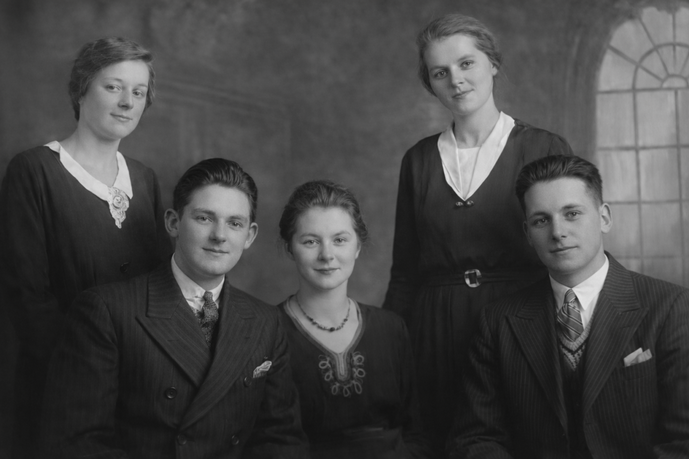 Maatje, Thor, Corrie, Jaan en rechts Daan omstreeks 1930 (collectie Richard van de Velde)