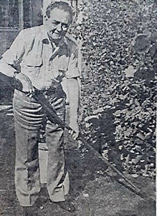 A former Dutch soldier who returned from the dead 40 years ago is enjoying a holiday in Congleton talking over old times with other countrymen who settled in the town after the war. Jan -Johnny- Corstjens (pictured) was fighting with the Princess Irene Brigade —A unit formed in Congleton from Dutchmen who had escaped from the Netherlands — hoping to liberate his home country in 1944 when his skull was shattered by a bullet. He was dumped on a wagon with dead comrades but later someone noticed his eyelids flickering and a successful battle started to save his life. He spent two years In hospitals in England and the Netherlands but surgeons did not dare to remove the bullet that was lodged in his brain. He still carries it in his skull today, the tip bent where it hit his helmet. The injury left him partly paralyzed on his right side, but he learned to live a full life and he and his Congleton-born wife Joyce have three children and six grandchildren. "When I think what happened to me I suppose I've been very lucky, 63-year-old Johnny told the Sentinel at his "holiday home" in West End Cottages. Congleton. Ironically, Johnny was injured trying to liberate the town where he had been stationed with the Army when the war started. After Holland was invaded he had escaped to England and joined the Princess Irene Brigade in Congleton where he met his future wife in 1941. They were married in 1944 and shortly afterwards Johnny was off to fight his way through Normandy and Belgium before being struck by the bullet. After the war Joyce joined Johnny in the Netherlands and they settled in Maastricht. His only regret about his present holiday is that he will not be in the town to celebrate the 40th anniversary of its liberation by American troops which falls in a few days’ time. Joyce comes from a well-known Congleton family. Her father, the late Fred Good-win, was a professional footballer who played for Brighton and she was a popular entertainer known as "Congleton's Gracie Fields" in her younger days. She still entertains in her adopted home country now.