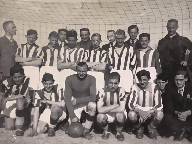 Jan (rechtsonderaan in voetvaltenue) in het elftal van Congleton Footbal (Bron: D. Westerhuis)