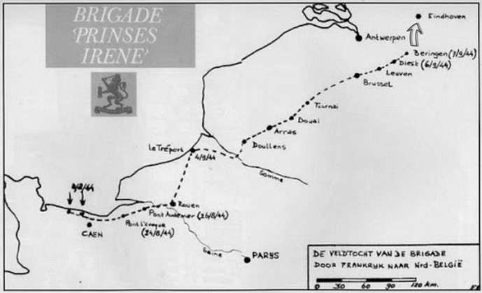 De 1e Gevechtsgroep functioneerde blijkbaar als infantrie bij de Brigade toen deze werd aangesloten bij de British 6th Airborne Division in Normandy. De Nederlanders die vrijwillig parachutisten werden, kwamen niet alleen uit Nederland, maar ook uit landen zoals Brazilië, U.S.A., Argentinië, Marokko, Suriname, Canada, Zuid-Afrika en Engeland.