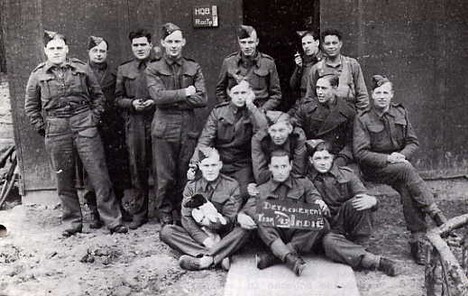 Enkele Indiëgangers, die daar echter nooit zijn geweest: vlnr: Luykenaar, Beekenkamp, De Groot, Visbeen, Van Driel, een hospik, onbekende chauffeur. middelste rij: Huisman, Van de Berg, Saarloos, Lambrechtse, onderste rij: Koolstra, Van der Veer, Meyer