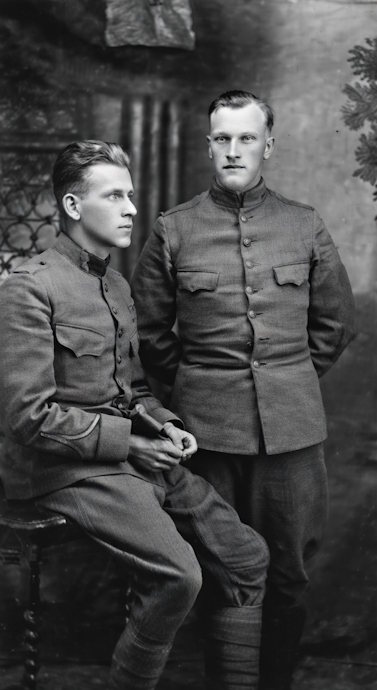 Staande rechts Jan op 19 juli 1940 met een vriend (Bron: Toevallig gevallen van Arie Kaan)