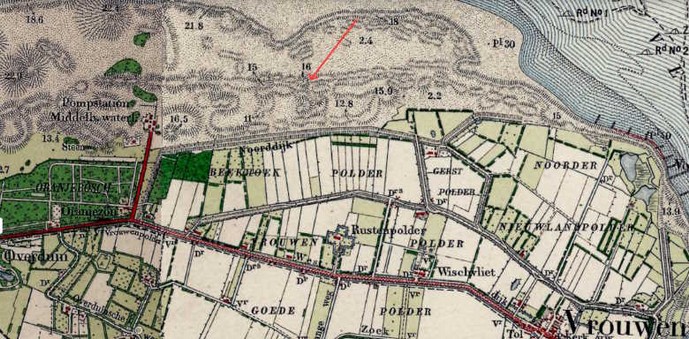 Bij de rode pijl vond het dodelijk incident plaats (met dank aan Lou Rison)