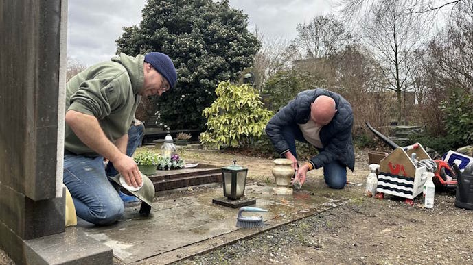 Initiatiefnemer was Corné Brands, medewerker S1 (Regimentszaken) bij 17 Painfbat GFPI van 13 Lichte Brigade binnen de Koninklijke Landmacht. Het was zijn streven om dit graf, dat hij al kende, weer in waardige staat te brengen. Hij nam contact op met Colin Bal en Lou Rison, specialisten op het gebied van het opknappen van oorlogsgraven. Met toestemming van de familie werd de grafzerk grondig gereinigd en zijn de inscripties opnieuw ingekleurd. Op de foto’s is te zien hoe Colins dochter Isabella de letters zorgvuldig schildert, hoe Colin (L) en Corné het graf onderhouden en hoe zij samen stilstaan bij het resultaat.